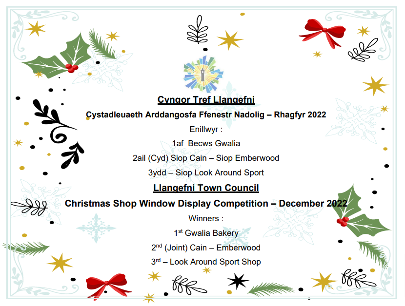 Cystadleuaeth Arddangosfa Ffenestr Nadolig – Rhagfyr 2022